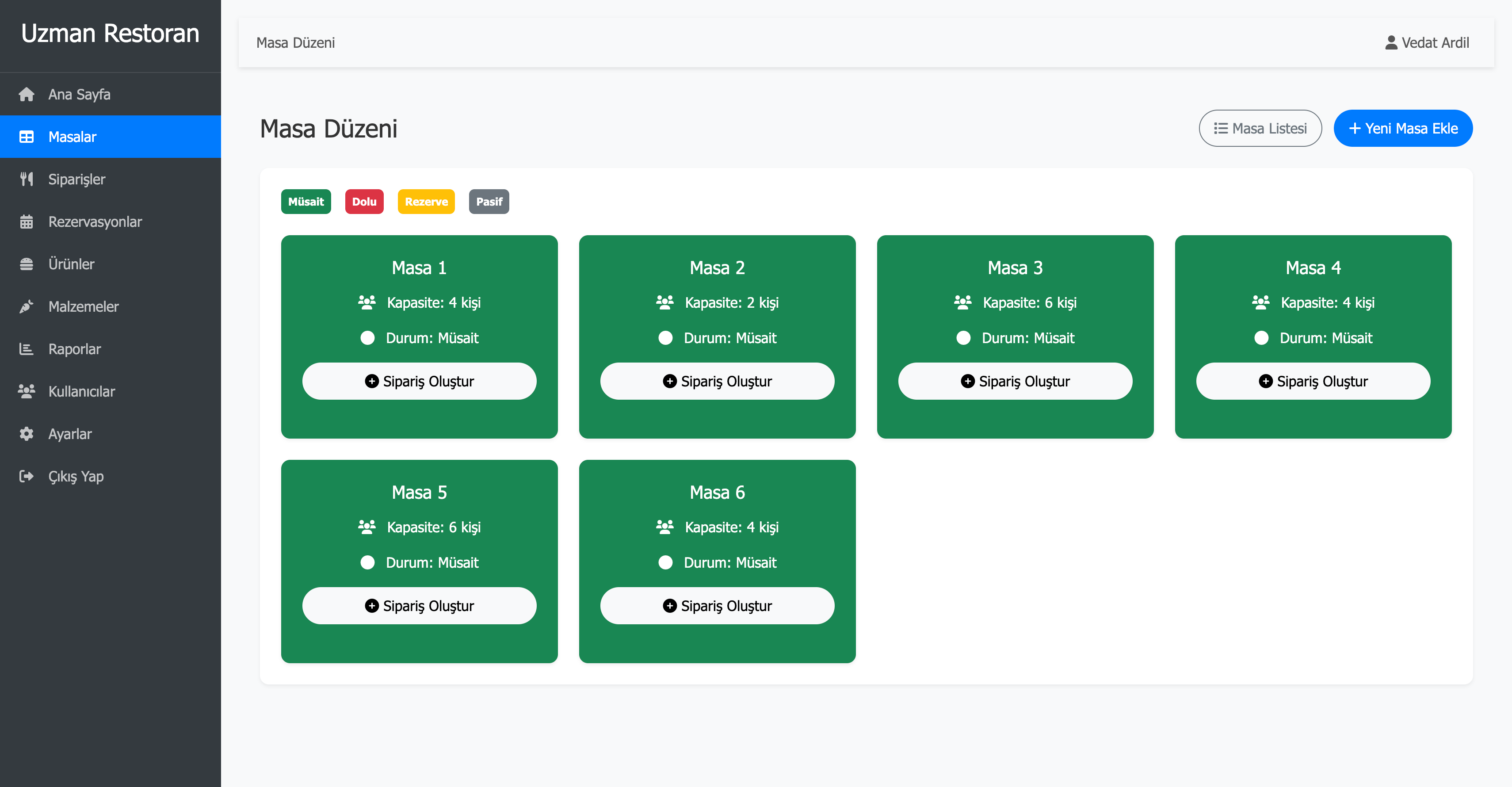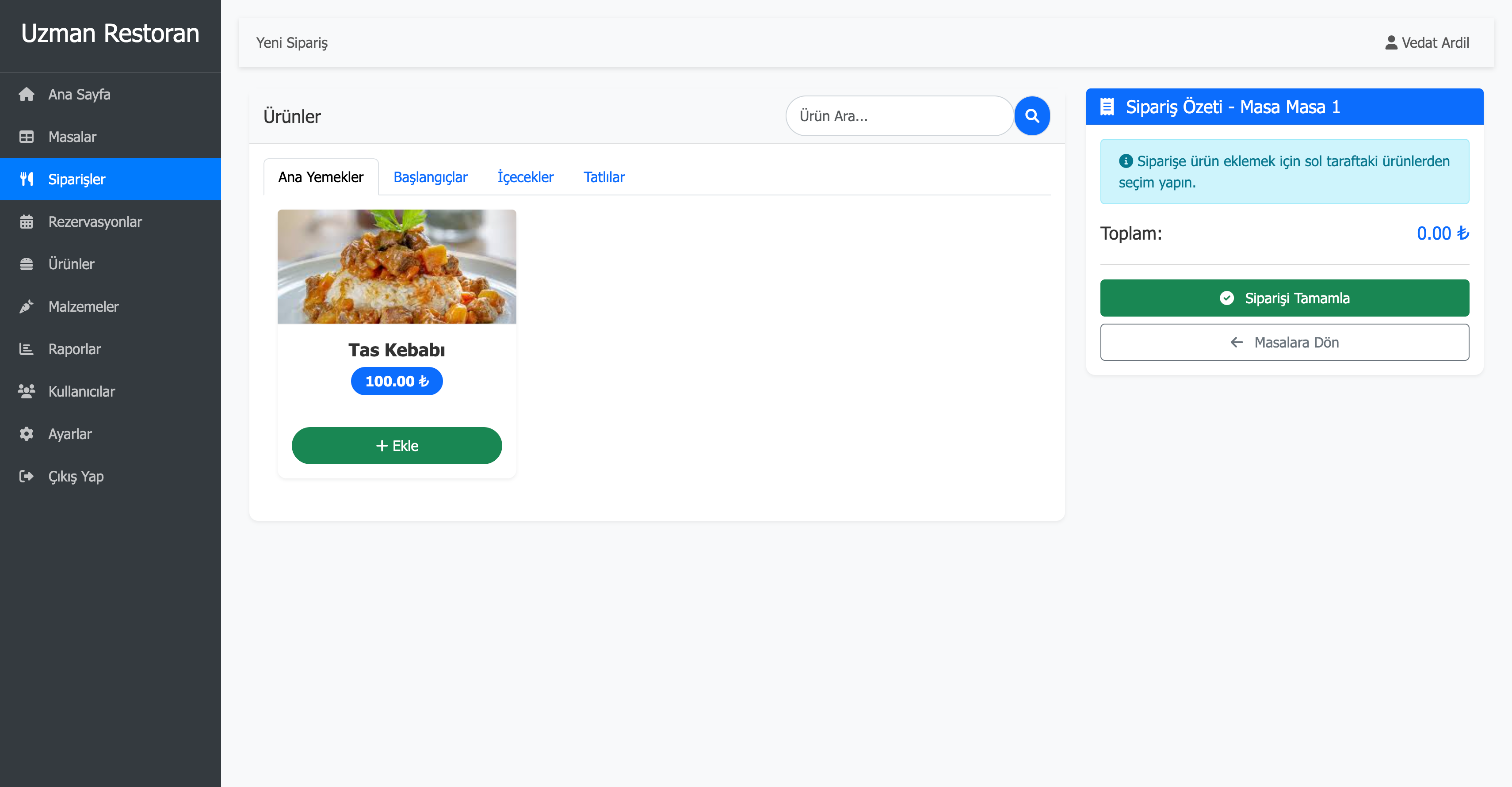 Uzman Restoran Yönetim Sistemimizin modern ve kullanıcı dostu arayüzüne göz atın. Resimlere tıklayarak daha detaylı inceleyebilirsiniz.